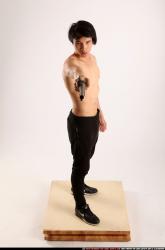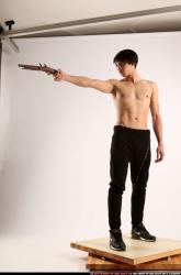 Man Young Athletic Fighting with rifle Standing poses Pants Asian